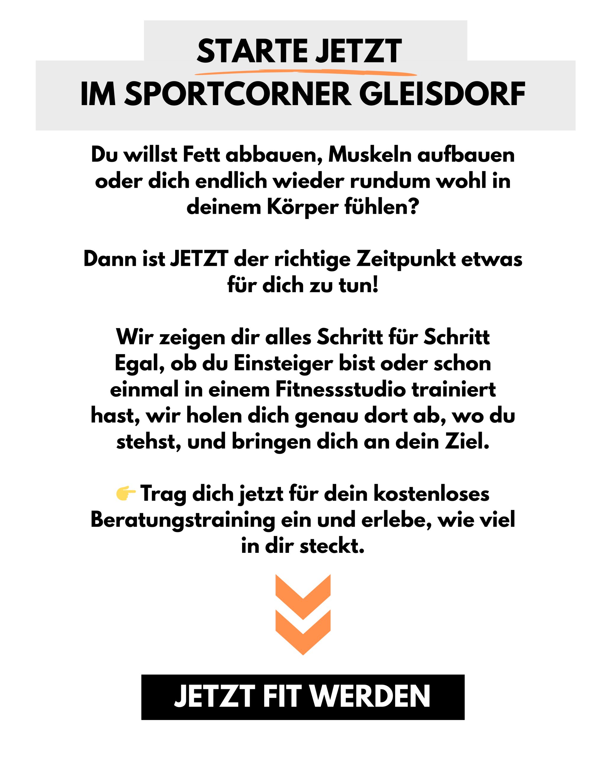 Im Anschluss zeigen wir dir gerne wie einfach Fitnesstraining auch für dich sein kann. Dafür nimm dir bitte zirka 1,5 Stunden Zeit.